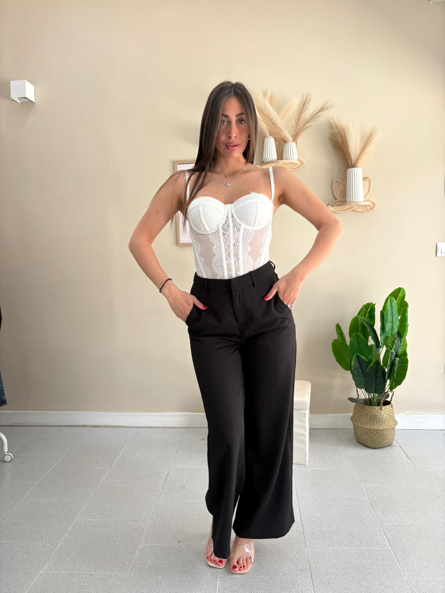 bustier velato con dettagli in pizzo, taglia unica, veste dalla taglia XS alla Taglia M.