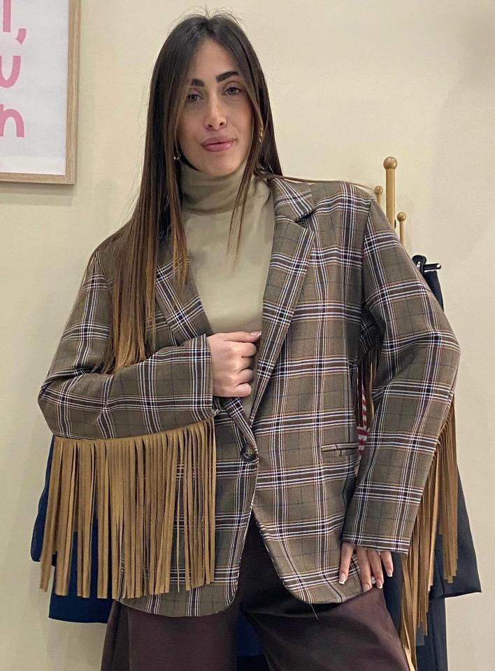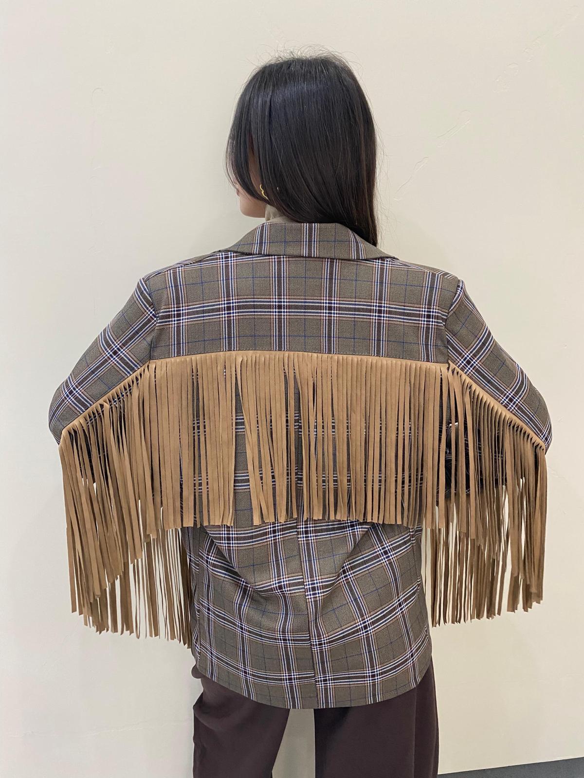 Giacca con frange sulle maniche e sul retro, taglia unica, veste dalla taglia XS alla taglia L.