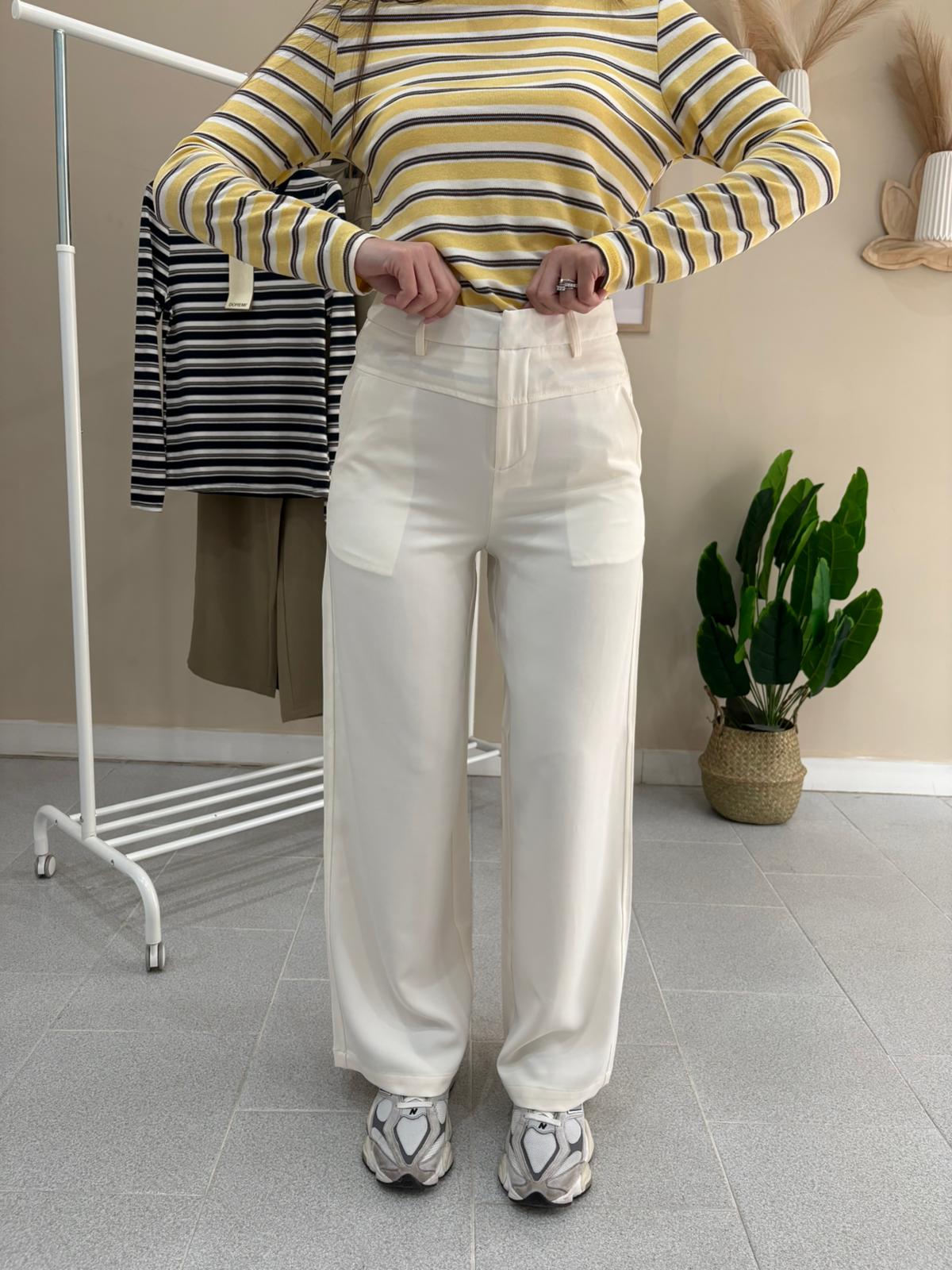 pantalone taglio maschile, tasca americana, vestibilità ridotta.