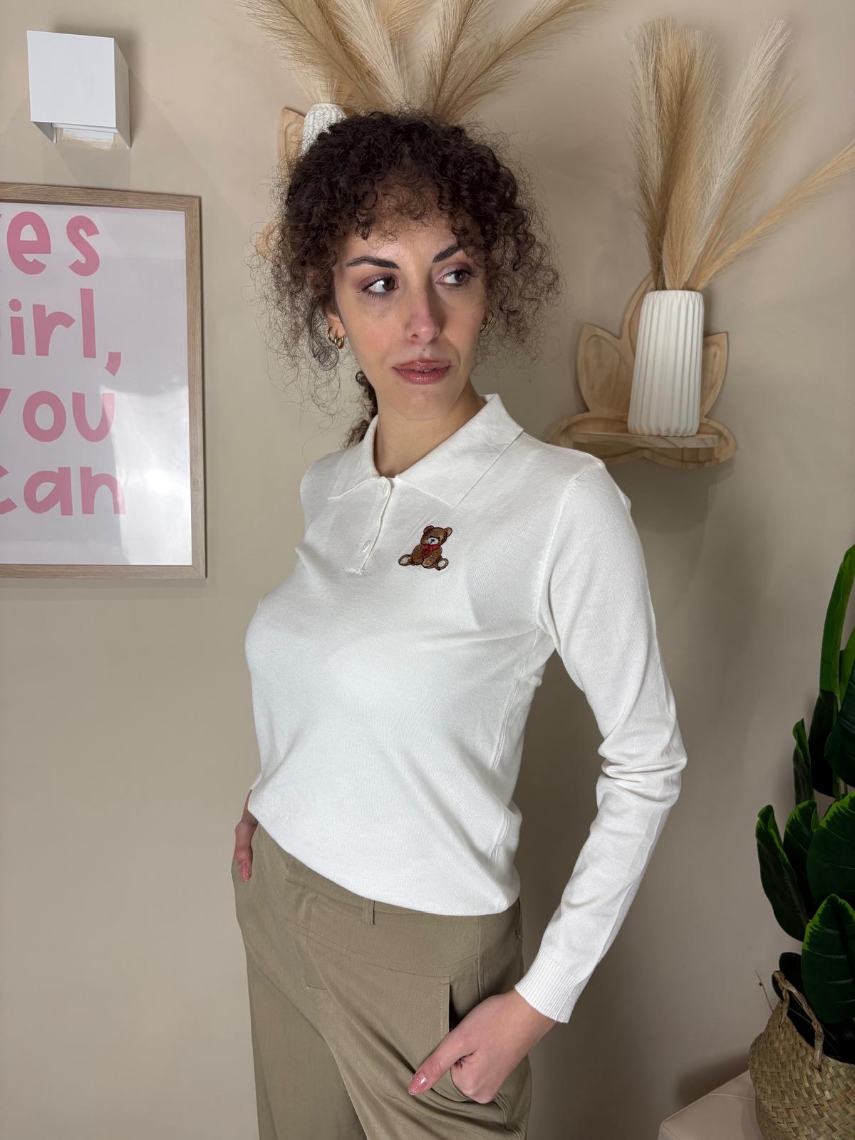 Maglia polo teddy: in filo e viscosa, taglia unica